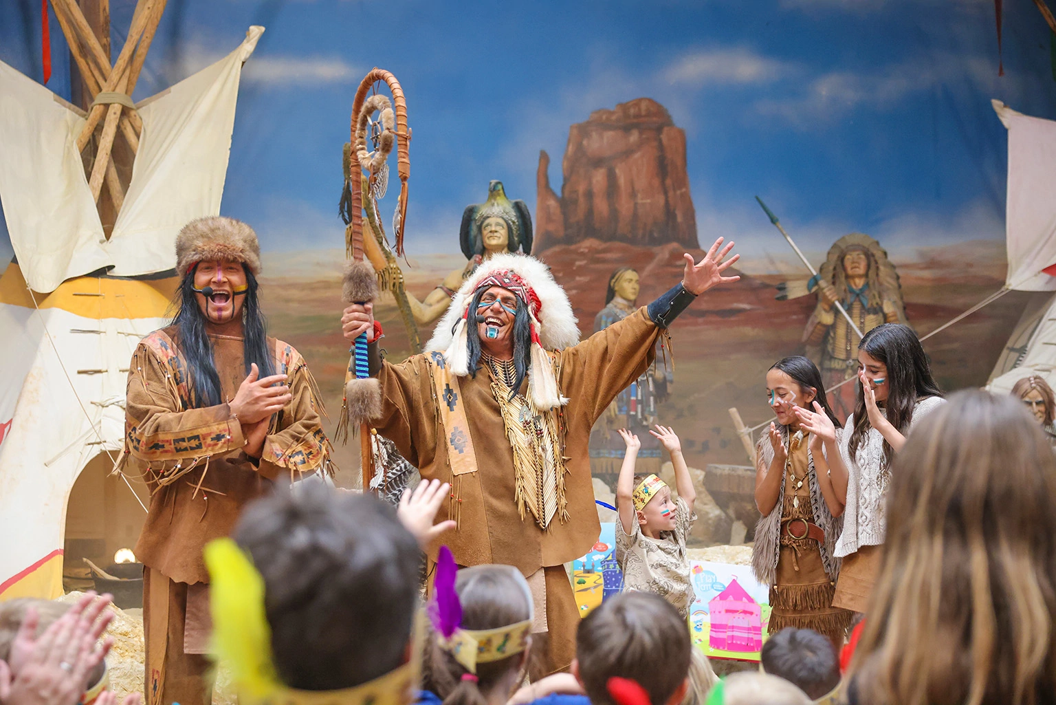 Gemütliches Malen und Basteln mit Sitting Bull. Tanzt den Regentanz um den großen Totempfahl! Schaffen es die Kinder, den Regen herbeizurufen?