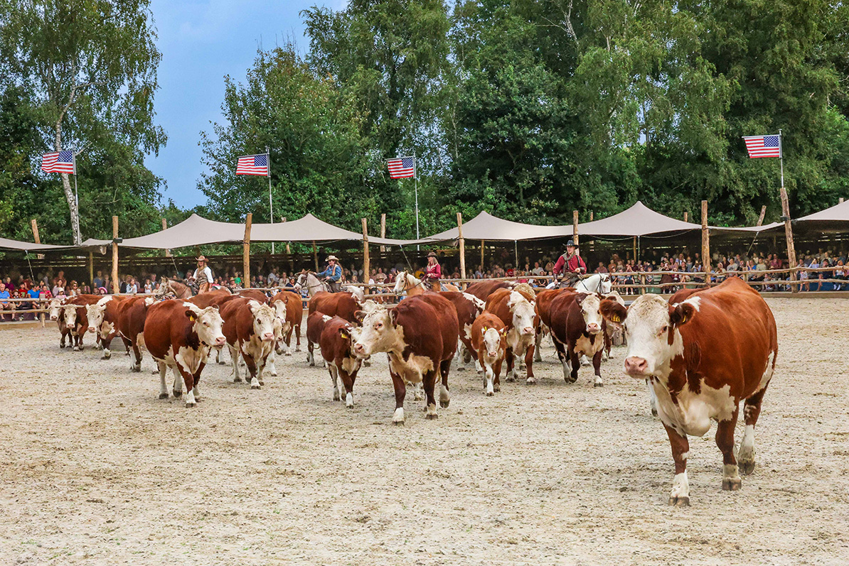 Ga mee terug in de tijd van het Wilde Westen. Een show met paarden, koeien, koetsen, muildieren én echte cowboys.