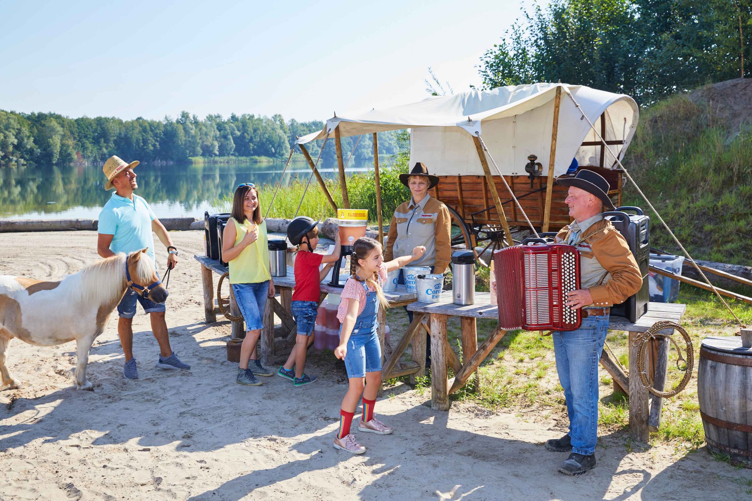 - Strandrit: Ponyrijden rondom het grote meer van Sunset Beach! Onderweg maken we een gezellige stop bij het pony-strand, waar je samen met de pony het water in kunt gaan, yeehaa! Geniet van het prachtige uitzicht over de gigantische waterplas en haal een verfrissend bekertje limonade. Een unieke ervaring voor jong en oud!